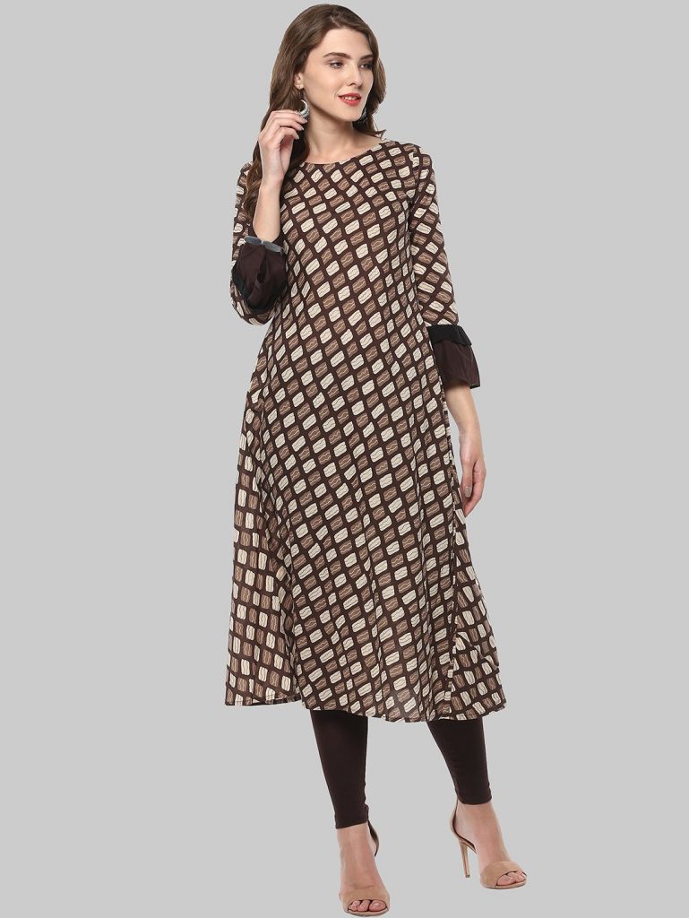 A-line Kurti design is popular among college and office going girls. Usually, the length of A-line kurta is till ankle or below your knees, because it forms an A shape, where it gives flare from your waist to give amazing shape and look. While hunting for your favourite one in the market, you will find hundreds of designs, colours and patterns. Irrespective of which one you choose, you can pair it with leggings, churidar or salwar.
